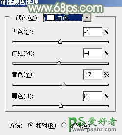12、创建可选颜色调整图层,对红、黄、绿、白、中性色进行调整,参数设置如图26 - 29,效果如图30。效果如图31。这一步给图片增加一点淡黄色。