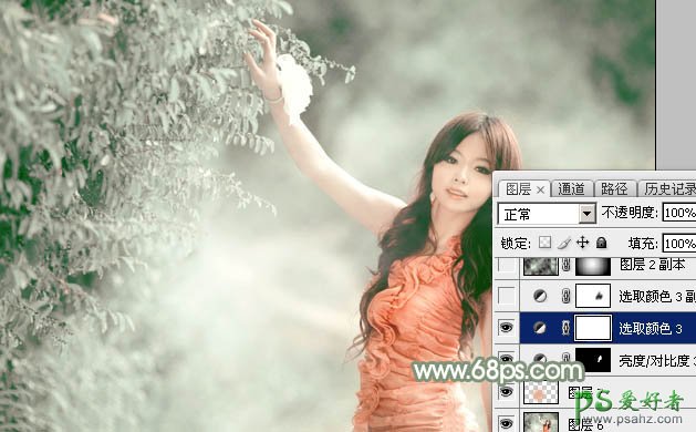 最后给人物磨一下皮,把背景局部稍微模糊处理,再微调一下整体颜色,完成最终效果。