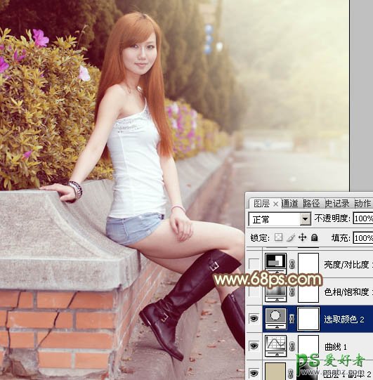 ps调色教程:给路边自拍的性感女神写真照调出秋季暖褐色