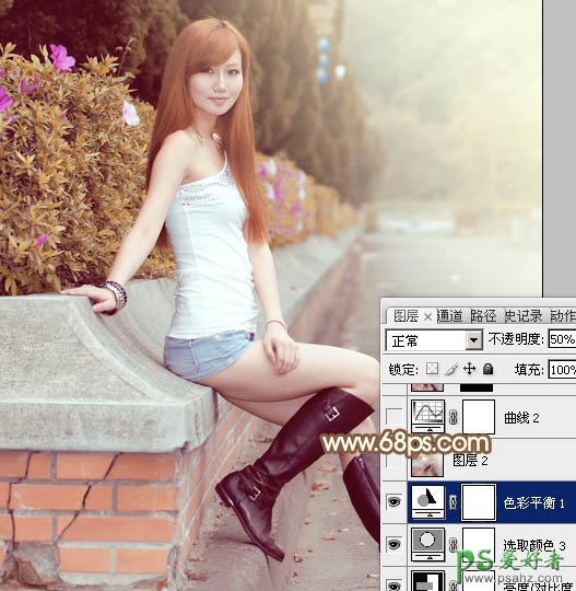 10、创建色彩平衡调整图层,对阴影,高光进行调整,参数设置如图29,30,确定好把图层不透明度改为:50%,效果如图31。这一步微调暗部及高光颜色。