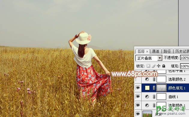 3、按Ctrl + Alt + 2 调出高光选区,然后创建纯色调整图层,颜色设置为淡黄色:#F0F8CF,确定后把图层混合模式改为“正片叠底”,效果如下图。这一步加深高光部分的颜色。