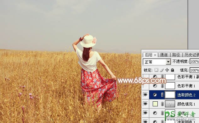photoshop给草地上的美少妇调出性感清爽的红褐色效果