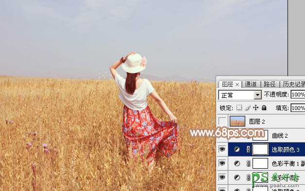 photoshop给草地上的美少妇调出性感清爽的红褐色效果