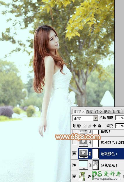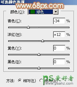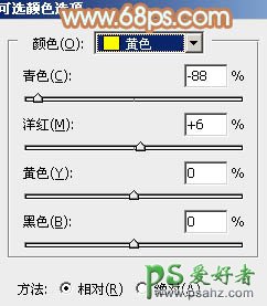 2、创建可选颜色调整图层,对黄、绿、中性色进行调整,参数设置如图2 - 4,效果如图5。这一步把背景部分的绿色转为橙黄色。