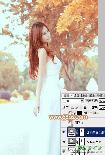 6、按Ctrl + J 把当前可选颜色调整图层复制一层,不透明度改为:50%,效果如下图。