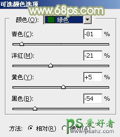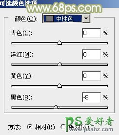 ,创建可选颜色调整图层,对黄、绿、中性色进行调整,参数设置如图1 - 3,效果如图4。这一步把背景中的绿色调淡。