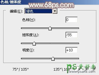 1、打开素材图片,创建色相/饱和度调整图层,对黄色,绿色进行调整,参数及效果如下图。这一步快速减少图片中的黄绿色。