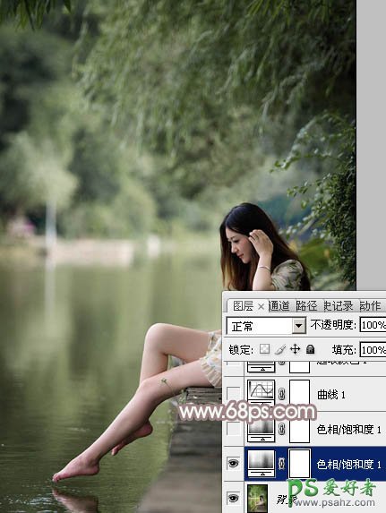 Photoshop给水池边戏水的光脚妹妹写真图片调出梦幻的中性色彩