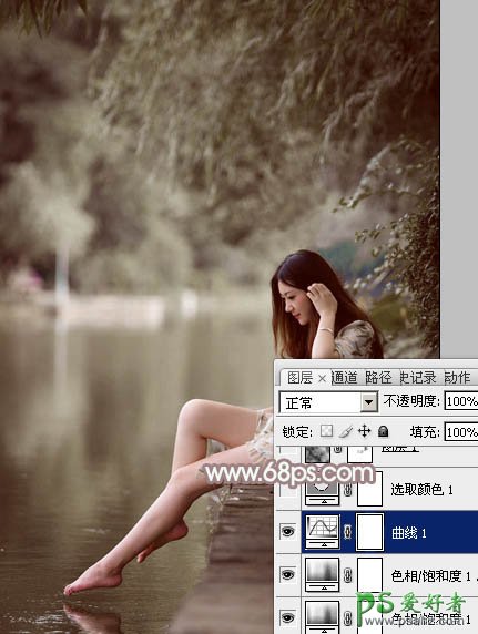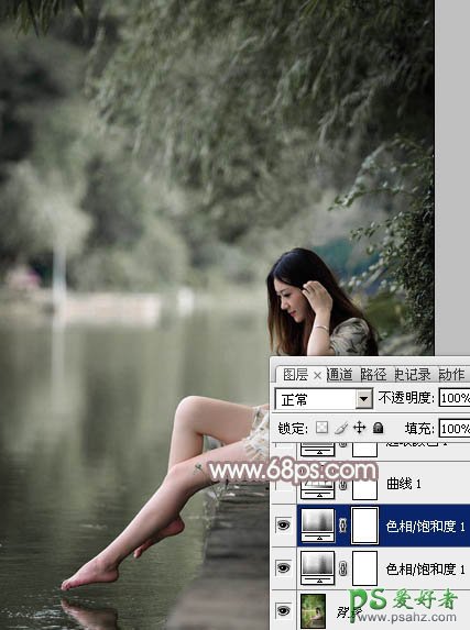 Photoshop给水池边戏水的光脚妹妹写真图片调出梦幻的中性色彩