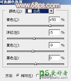 4、创建可选颜色调整图层,对红、白、中性、黑色进行调整,参数设置如图7 - 10,效果如图11。这一步给图片增加红褐色,高光部分增加淡青色。