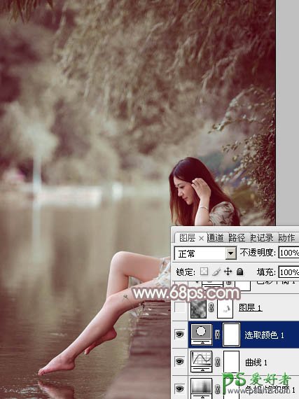 Photoshop给水池边戏水的光脚妹妹写真图片调出梦幻的中性色彩