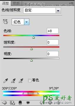 9,在点色相/饱和度,调整人物肤色红色