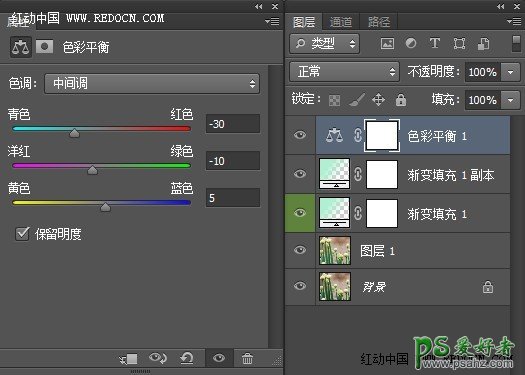 6、新建色彩平衡调整图层,设置如下。阴影:-15,-5,20;中间调:-30,-10,5;高光:0,-10,30。