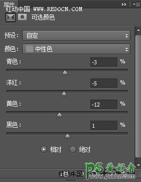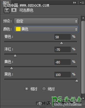 14、新建可选颜色调整图层,对黄色和中性色进行调整,如图所示。
