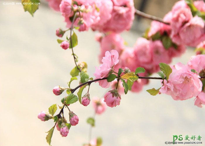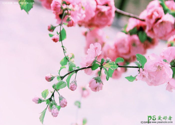 PS调色教程实例,photoshop给外景风景照片调出好看的粉调青红色效果,效果图是比较常用的日韩系颜色,适合景物及特写图片。调色的时候可以保留图片中的青绿色,重点给高光部分增加淡粉色。 原图