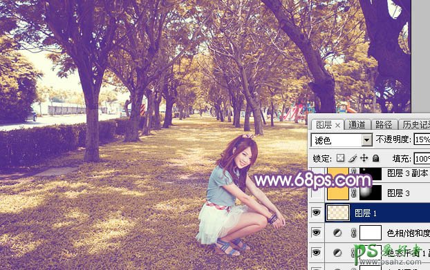 13、按Ctrl + Alt + 2 调出高光选区,创建纯色调整图层,颜色设置为淡黄色:#FAE7BA,混合模式改为“滤色”,不透明度改为:15%,效果如下图。这一步给高光部分增加淡黄色。