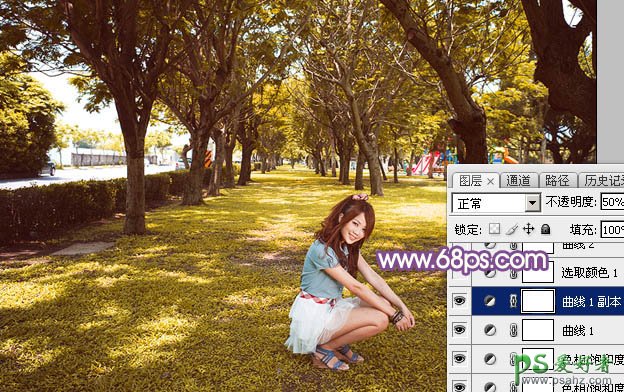5、按Ctrl + J 把当前曲线调整图层复制一层,不透明度改为:50%,效果如下图。
