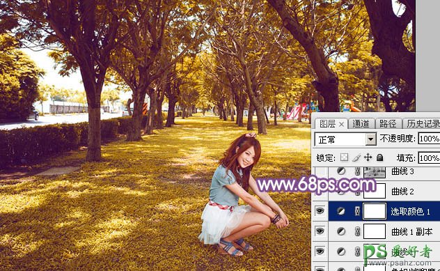 PS调色教程:给公园里极品高跟美女外拍照片调出唯美的淡暖色