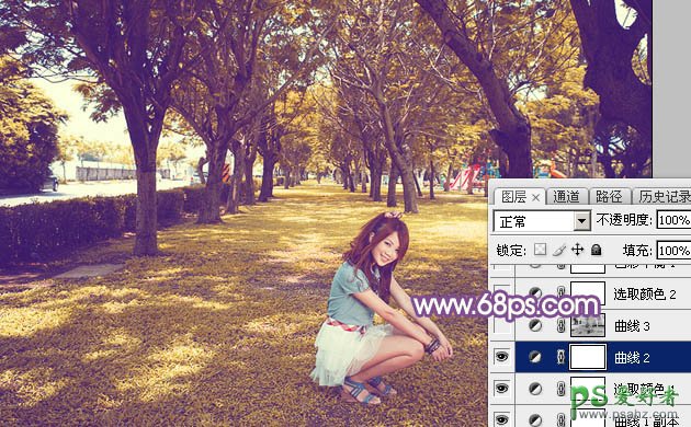 PS调色教程:给公园里极品高跟美女外拍照片调出唯美的淡暖色