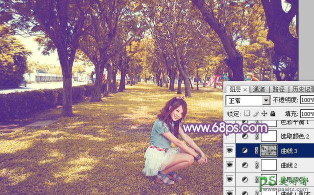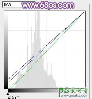 8、按Ctrl + Alt + 2 调出高光选区,按Ctrl + Shift + I 反选,然后创建曲线调整图层,对RGB、绿、蓝通道进行调整,参数及效果如下图。这一步主要给图片暗部增加蓝色。