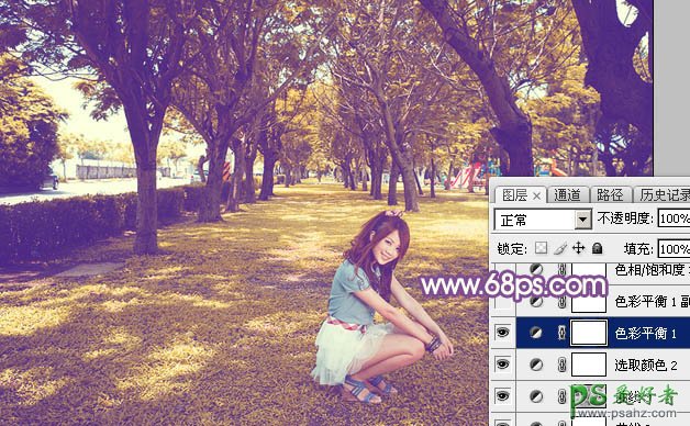 PS调色教程:给公园里极品高跟美女外拍照片调出唯美的淡暖色