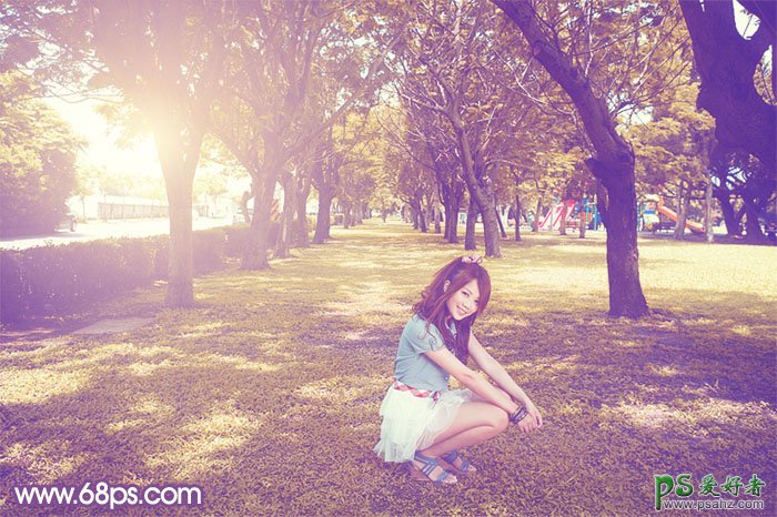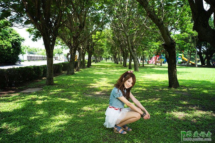 PS美女图片调色教程,PS调色教程:给公园里极品高跟美女外拍照片调出唯美的淡暖色,通过调色我们发现这张妹妹的照片变得很温暖,人物显得也更加唯美,性感,喜欢的同学们好好学习一下后期调色的过程吧。