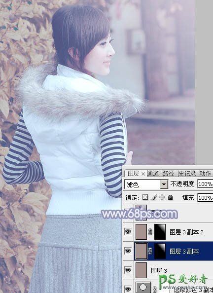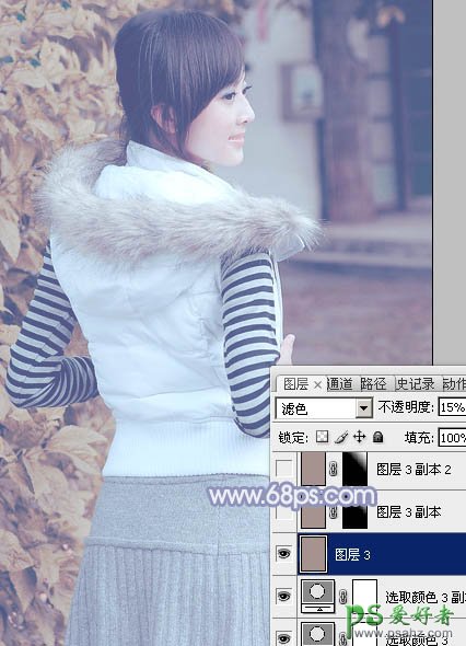 15、创建纯色调整图层,颜色设置为红褐色:#A6928F,混合模式改为“滤色”,不透明度改为:15%,效果如下图。