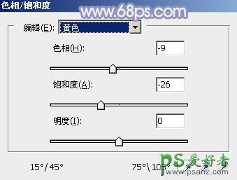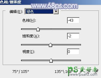 1、打开素材图片,创建色相/饱和度调整图层,对黄色,绿色进行调整,参数及效果如下图。这一步把背景部分的黄绿色转为中性色。