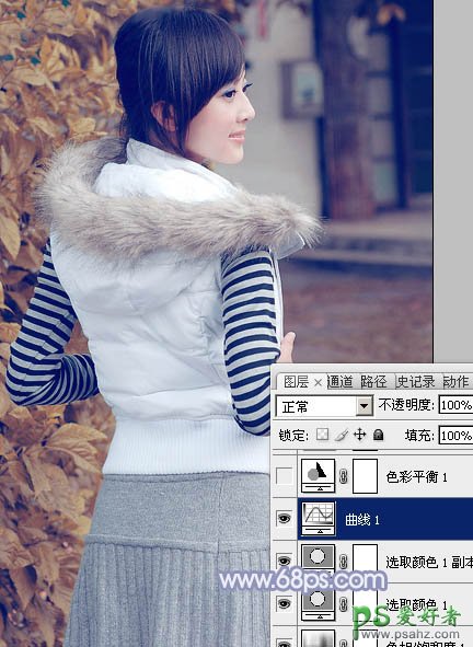 photoshop给性感的果子美女图片调出唯美的韩系冬季冷色调