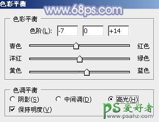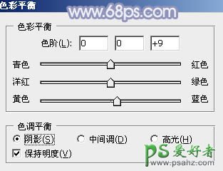 5、创建色彩平衡调整图层,对阴影、中间调、高光进行调整,参数设置如图12 - 14,效果如图15。这一步给图片暗部及高光部分增加蓝色。