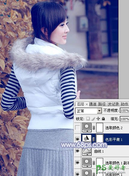 photoshop给性感的果子美女图片调出唯美的韩系冬季冷色调