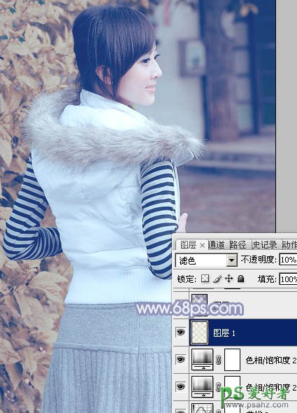 11、按Ctrl + Alt + 2 调出高光选区,创建纯色调整图层,颜色设置为淡黄色:#EAE9DA,混合模式改为“滤色”,不透明度改为:10%,效果如下图。这一步增加图片高光部分的亮度。