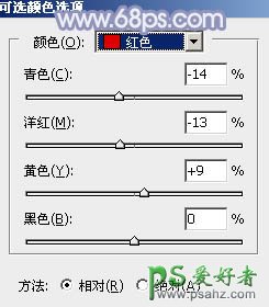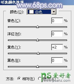 13、创建可选颜色调整图层,对红、蓝、白进行调整,参数设置如图31 - 33,效果如图34。这一步微调颜色及高光部分的颜色。