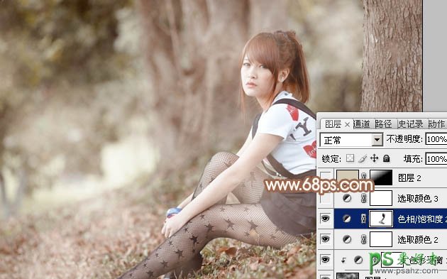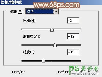 6、创建色相/饱和度调整图层,对红色进行调整,参数设置如图17,确定后用黑色画笔把人物部分擦出来,效果如图18。这一步降低图片中红色的饱和度。