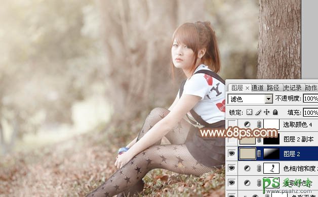 7、创建纯色调整图层,颜色设置为淡黄色:#D2CAB5,确定后把混合模式改为“滤色”,选择渐变工具,颜色设置为黑白,然后由左上角至右下角拉出白色至黑色线性渐变。这一步给图片中增加高光。