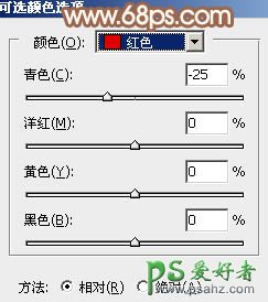 9、创建可选颜色调整图层,对红、黄、白进行调整,参数设置如图21 - 23,效果如图24。这一步给图片增加淡红色。