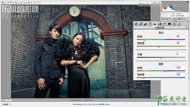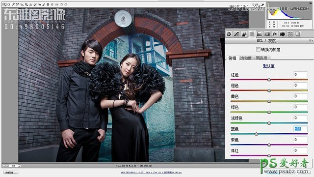 PS影楼后期调色教程:给时尚男女影楼婚片调出复古青色效果