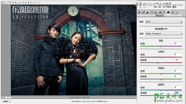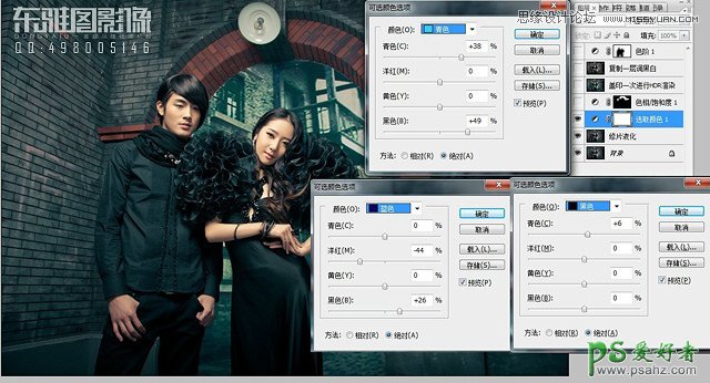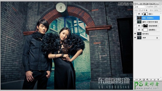 PS影楼后期调色教程:给时尚男女影楼婚片调出复古青色效果