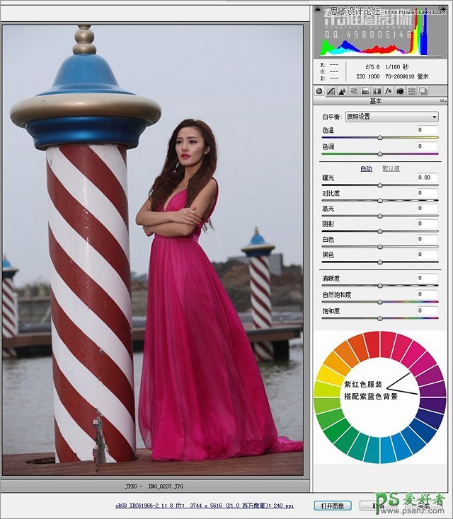 1、对原片进行曝光处理。校正色温-暗部提亮-增加饱和度。