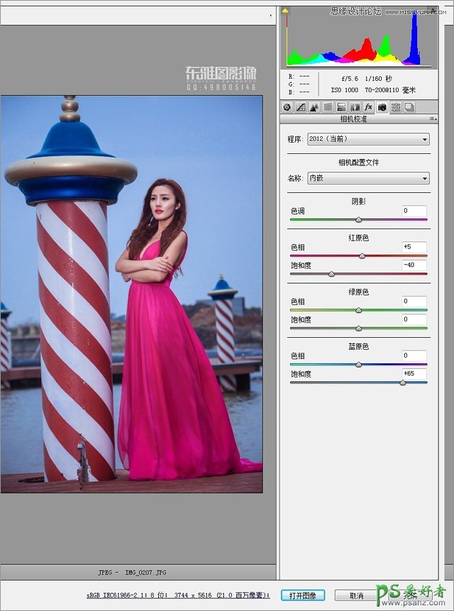 6、给蓝原色增加饱和度,并且给红原色减掉一些红,让照片看起来更加透亮。