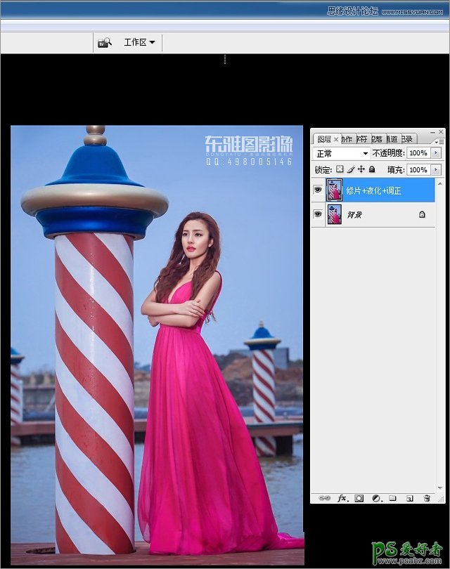 PS婚片调色教程:给时尚大气的MM外景婚纱照调出质感的铜色效果