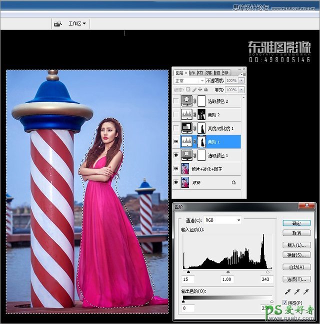 PS婚片调色教程:给时尚大气的MM外景婚纱照调出质感的铜色效果