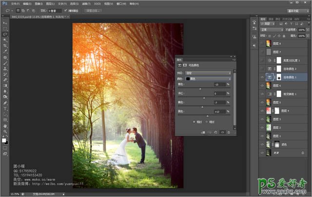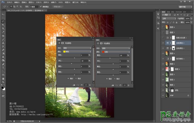 8、再次用可选颜色调整一下整个画面的颜色,从而使整体的色调统一下。