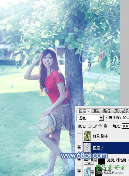 13、按Ctrl + Alt + 2 调出高光选区,按Ctrl + Shift + I 反选,创建纯色调整图层,颜色设置为暗蓝色:#497BAC,确定后把混合模式改为“滤色”,不透明度改为:20%,效果如下图。这一步给图片暗部增加蓝色。