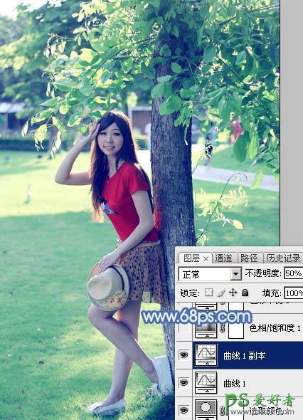 3、按Ctrl + J 把当前曲线调整图层复制一层,不透明度改为:50%,效果如下图。