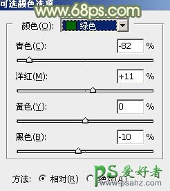 1、打开素材图片,创建可选颜色调整图层,对黄、绿、青进行调整,参数设置如图1 - 3,效果如图4。这一步给图片增加黄绿色。
