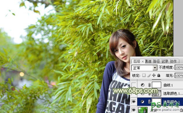 Photoshop给竹林中小女孩的性感艺术照调出淡调黄绿色