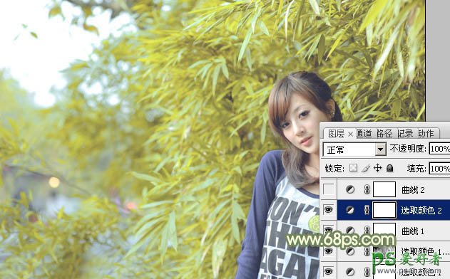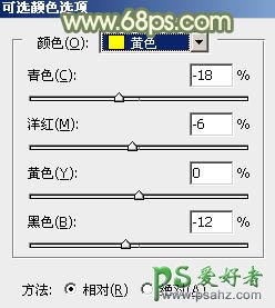 4、创建可选颜色调整图层,对黄、绿、白、中性、黑进行调整,参数设置如图8 - 12,效果如图13。这一步把图片中的黄绿色调淡,高光部分再增加淡黄色。