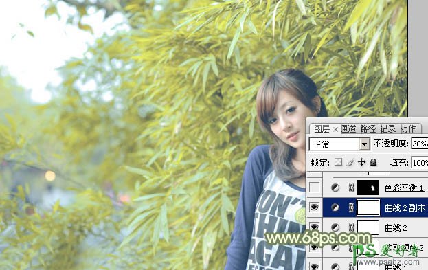 6、按Ctrl + J 把当前曲线调整图层复制一层,不透明度改为:20%,效果如下图。