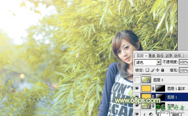 8、新建一个图层,填充橙黄色:#FDD253,混合模式改为“滤色”,添加图层蒙版,用黑白渐变由左上角至右下角拉出白色至黑色线性渐变,效果如下图。这一步给图片增加高光。